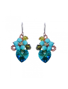 Bijou / boucles en cristal Autrichien en forme de coeur bleu