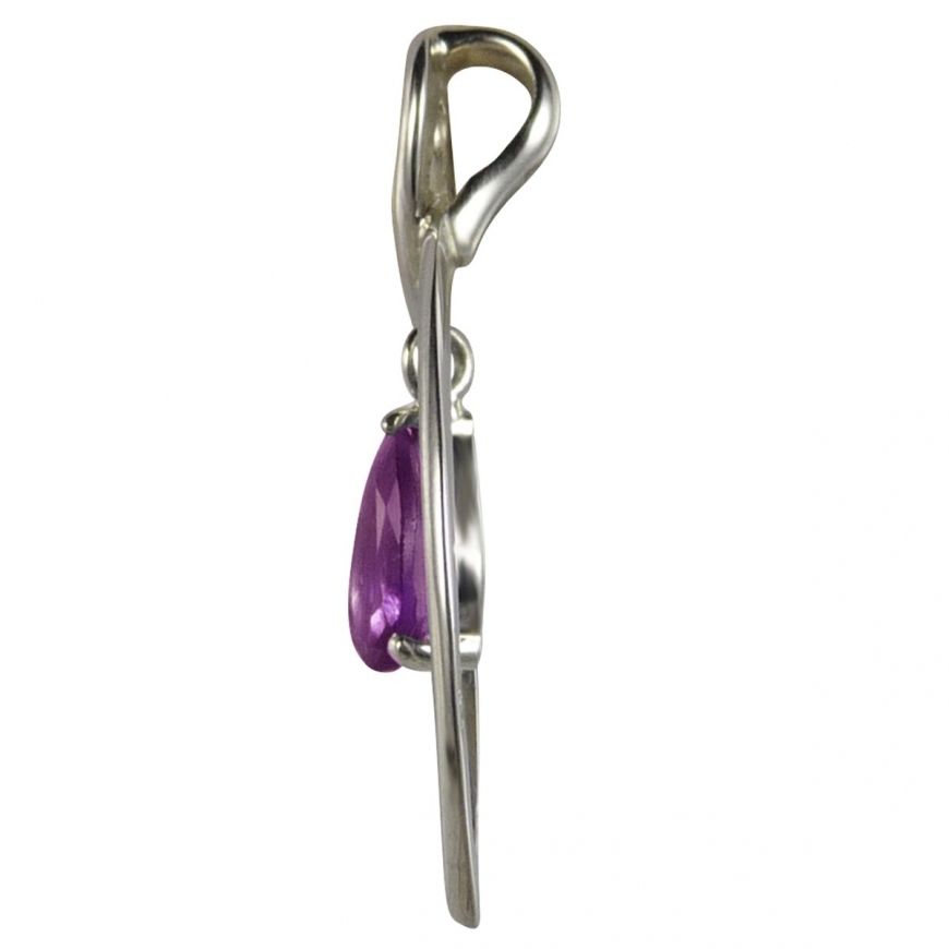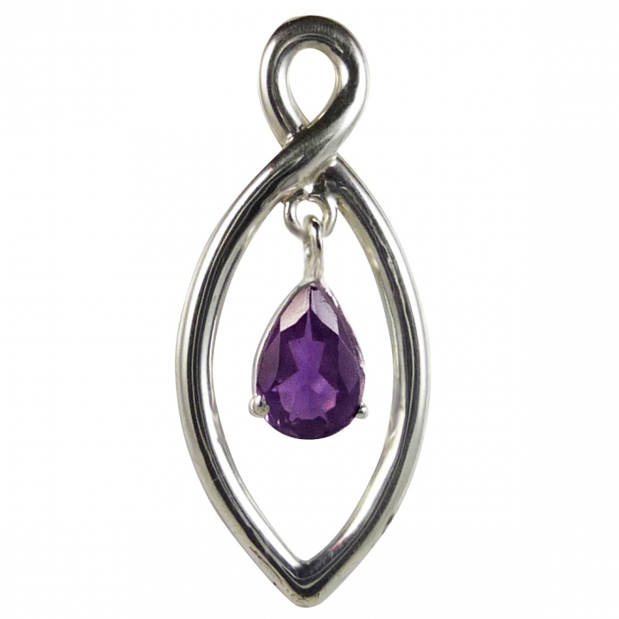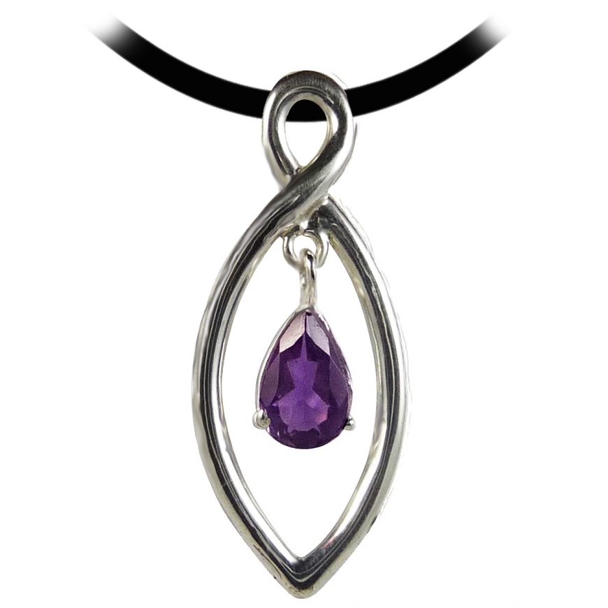 Pendentif moderne argent en forme de navette avec au centre, une larme d'améthyste suspendue dans le vide. Bijou original, design et sobre ce bijou vous séduira.