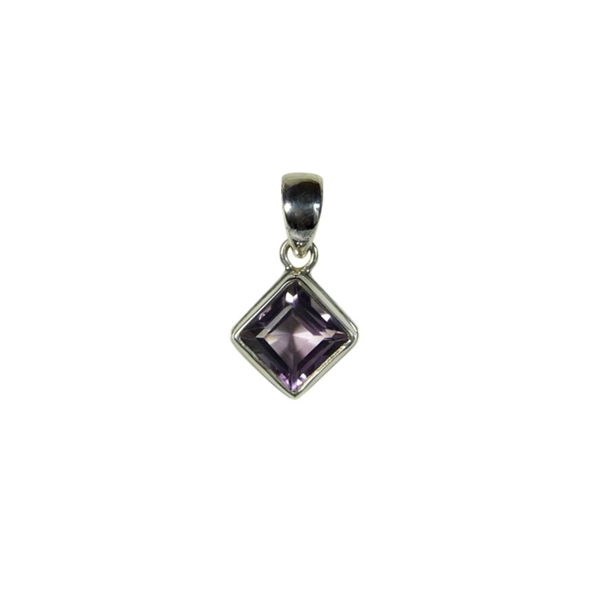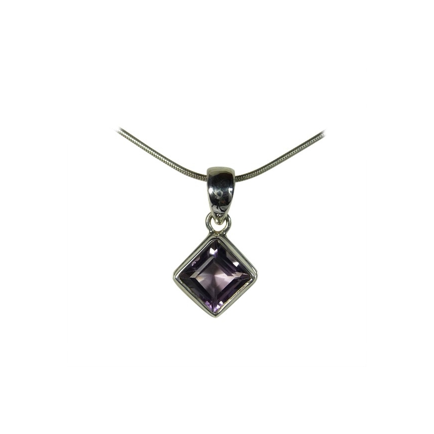 Pendentif en améthyste d'un violet pale et translucide en forme de losange, l'améthyste est classée dans les pierres fines ou semi précieuses, pendentif sobre et discret.