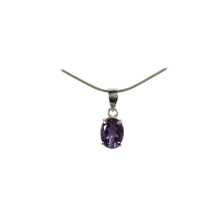 Petit pendentif en améthyste violet en forme de petit ovale griffé. Ses facettes le font miroiter de milles feux. Discret et lumineux.