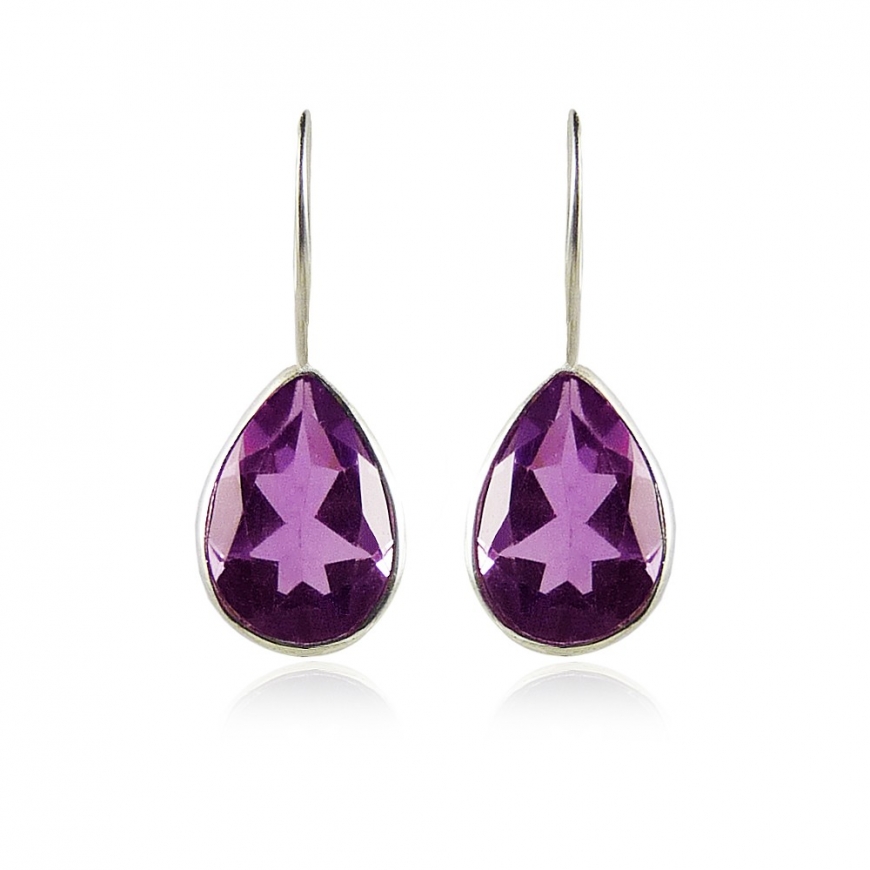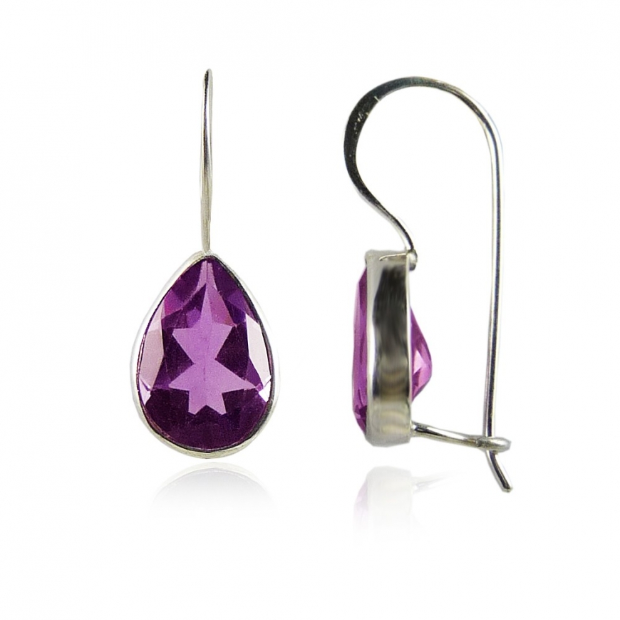 Boucles d'oreilles améthyste goutte d'eau ou poire. La monture en argent massif met en valeur de belles améthystes brillantes avec des pierres violette, facile à porter en toute saison. Le fermoir est doté d'une sécurité. Pierre semi - précieuse fine violette