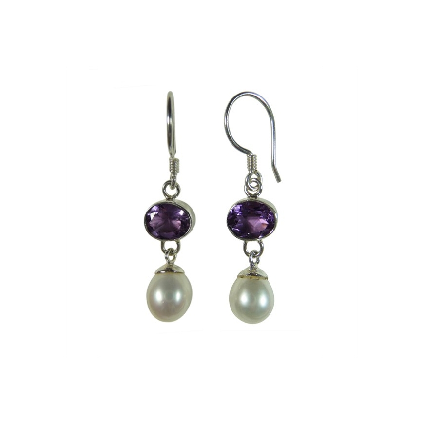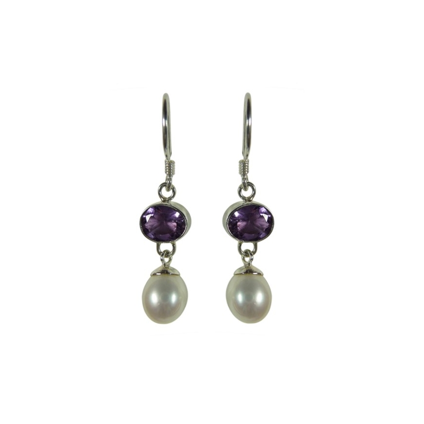 • Ces boucles d'oreilles en argent montées en dormeuses serties d' améthystes facettées et rehaussées d'une perle de nacre peuvent se porter avec toutes les tenues. Livrées avec des bouchons silicone autobloquants.