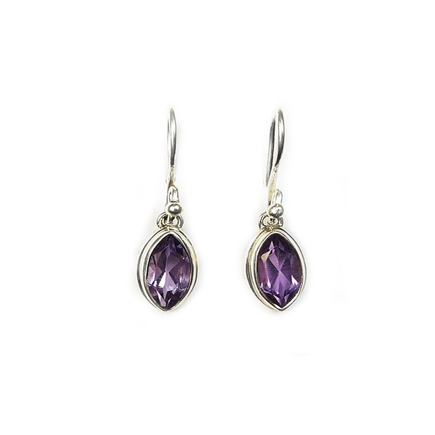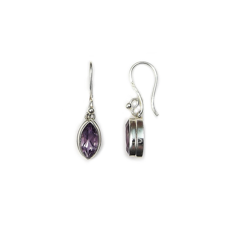 Ces boucles d'oreilles pendantes gouttes en argent et améthystes allongées en forme d'œil de chat sont originales, fines et discrètes . Livrées avec des bouchons en silicone autobloquants.