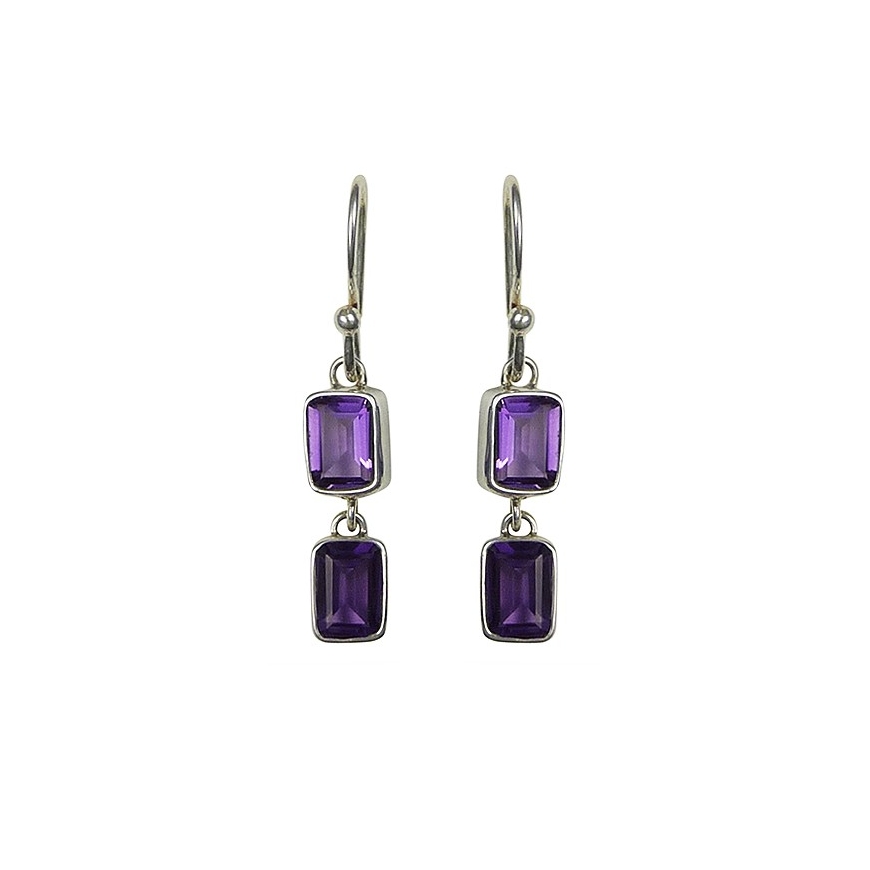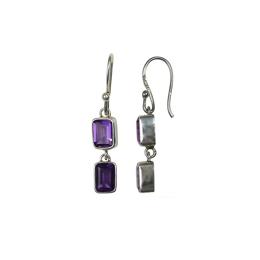 Boucles d'oreilles pendantes en argent et améthystes rectangulaires