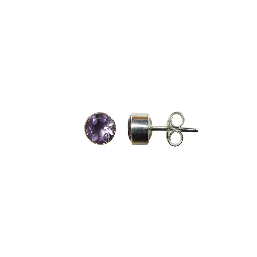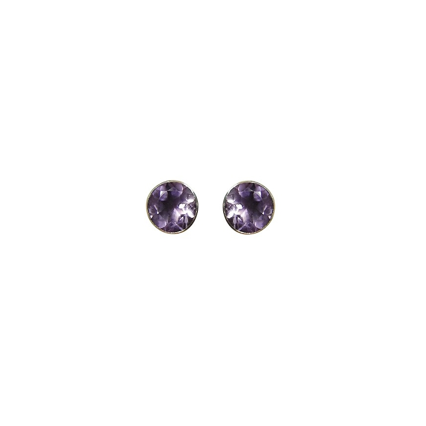 Ces clous d'oreilles en argent et améthystes brillantes sont classiques et légères,elles sont petites rondes et facettées, elles sont parfaites pour les femmes actives et coquettes, Elles disposent de fermoirs papillon en argent.
