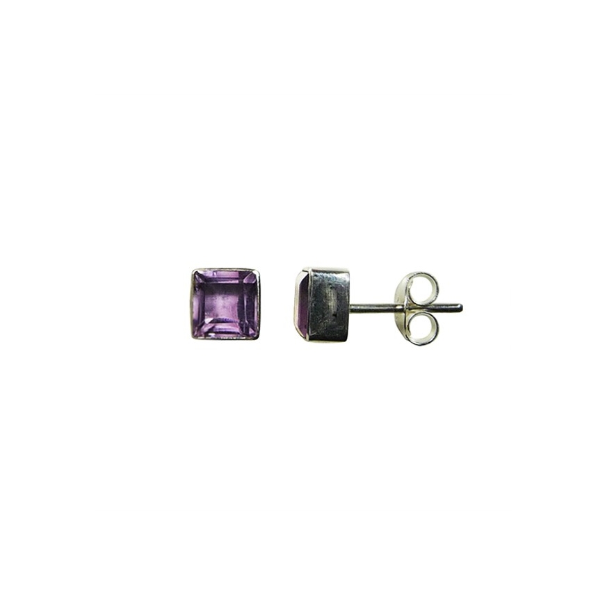 Boucles d'oreilles argent et améthyste carrées forma clous
