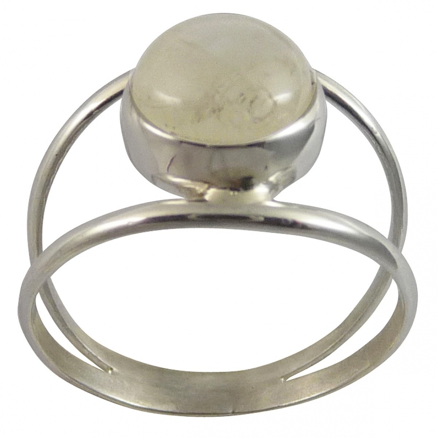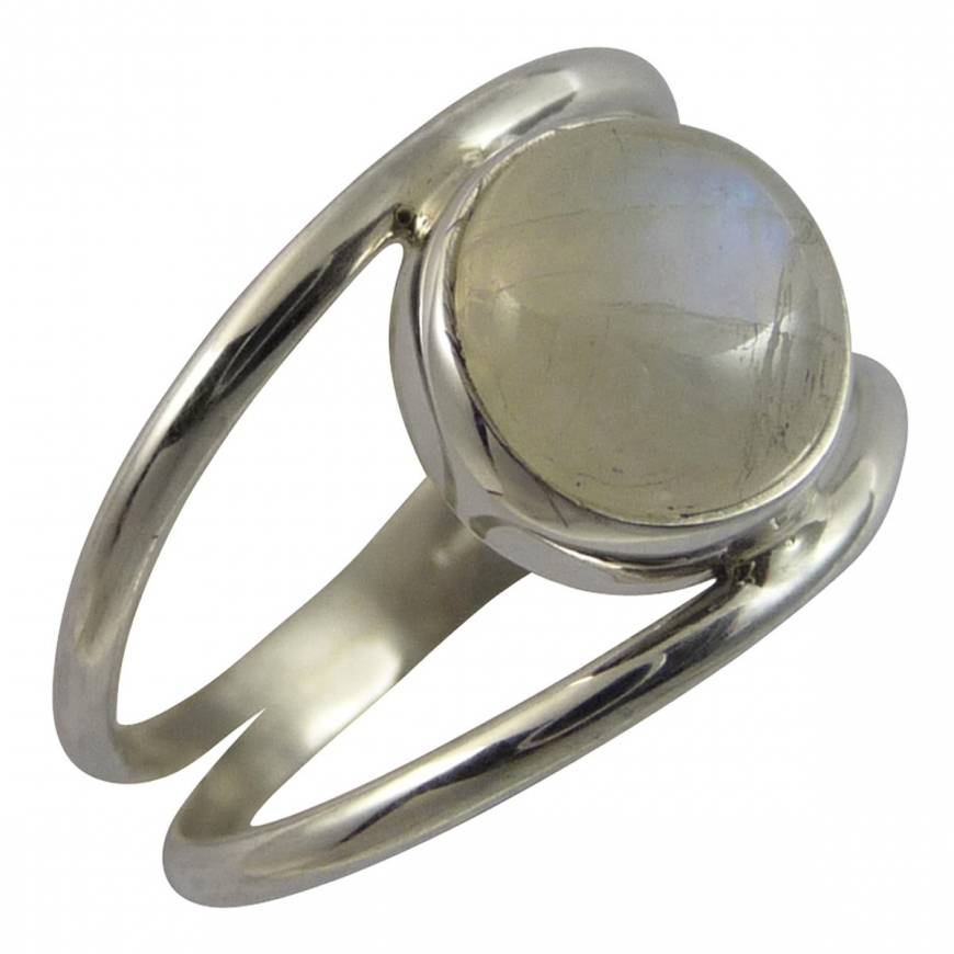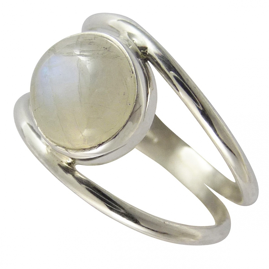 Double anneau pour cette bague avec une fine monture en argent lisse et avec une beau cabochon de pierre de lune aux reflets irisants et nacrés. cette bague avec une pierre blanche est fine et légère.