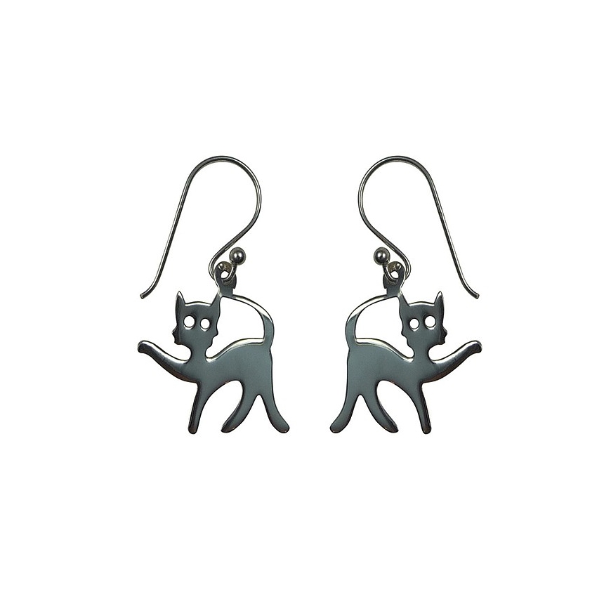 Boucles d'oreilles argent en forme de chat.