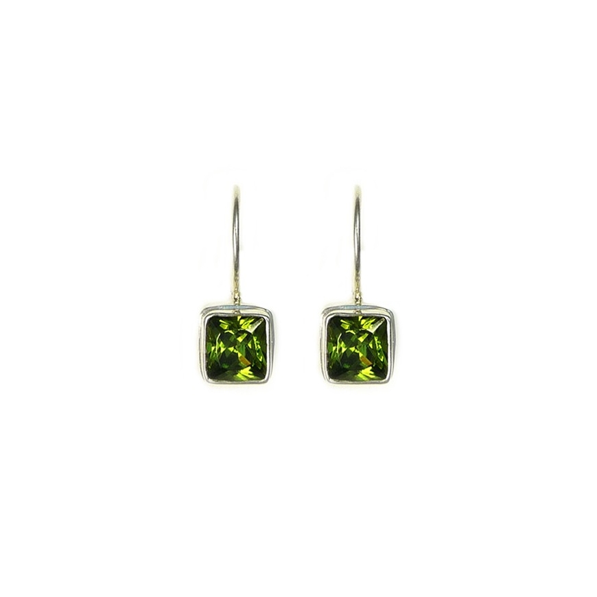 Pendants d'oreilles à crochets en argent et péridots carrées