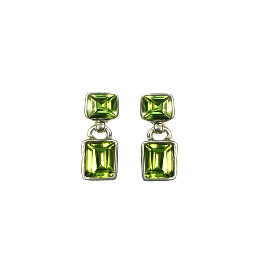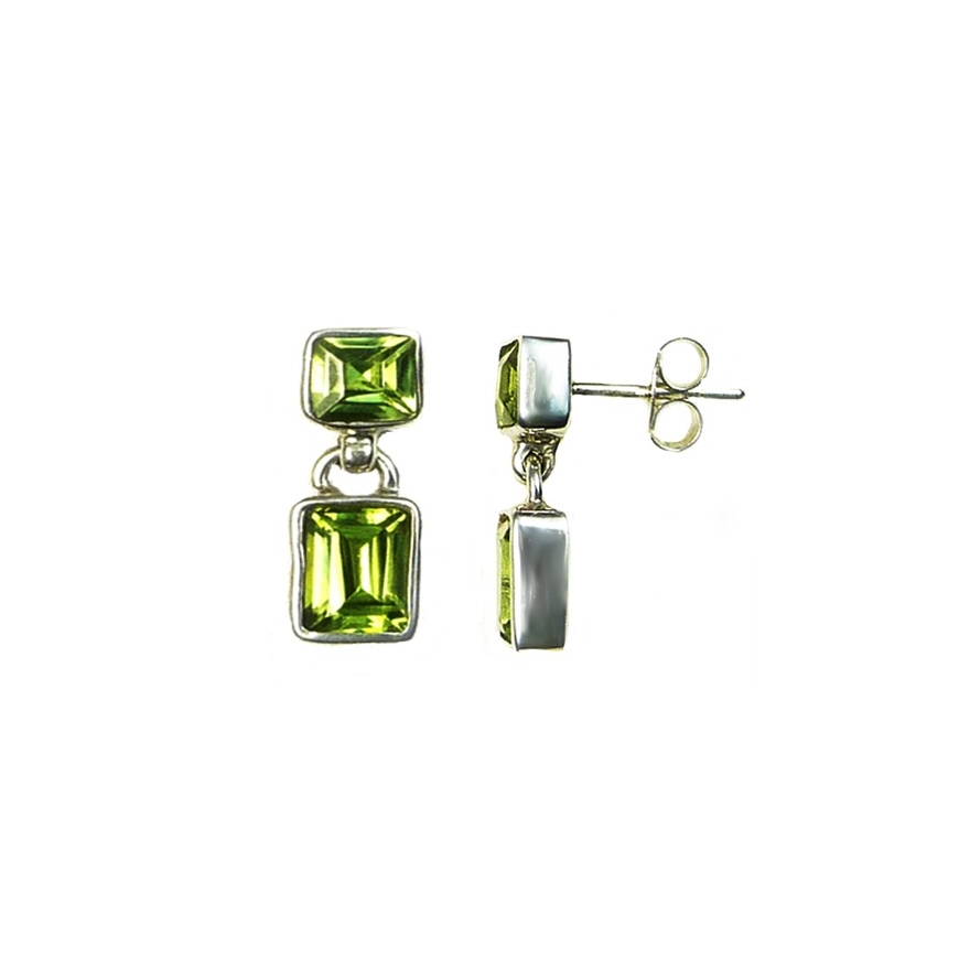 Clous d'oreilles pendants en argent et péridots carrées et rectangulaires