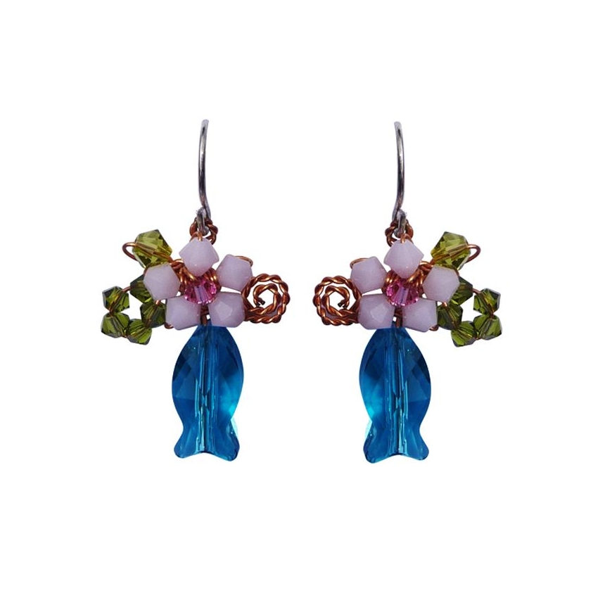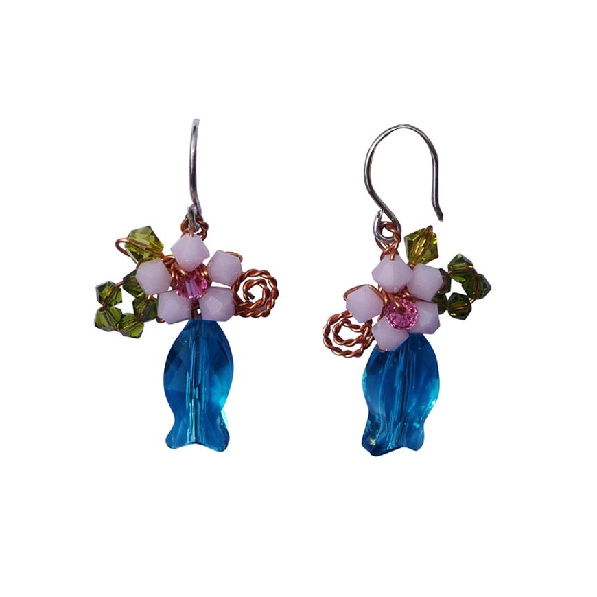 Boucles en cristal Autrichien montées sur argent 925 : bijou en cristal bleu canard, ces boucles en cristal transparentes bleues, sont associées à une petite fleur rose dragée en cristal avec un pistile transparent rose grenadine.Monture en argent 925. Ce bijou est frais et gai pour les jeunes filles et les femmes, il donnera de l'éclat à votre visage.