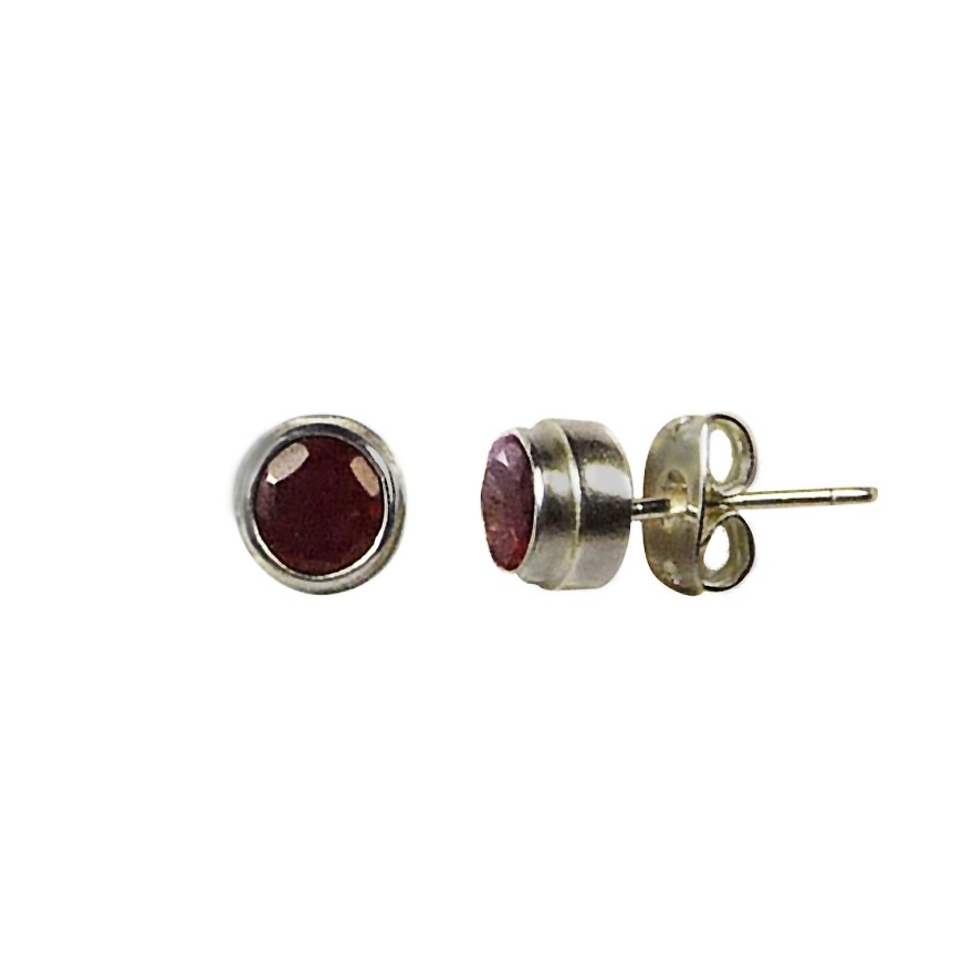 Boucles d'oreilles clous ronds argent et grenat facettés
