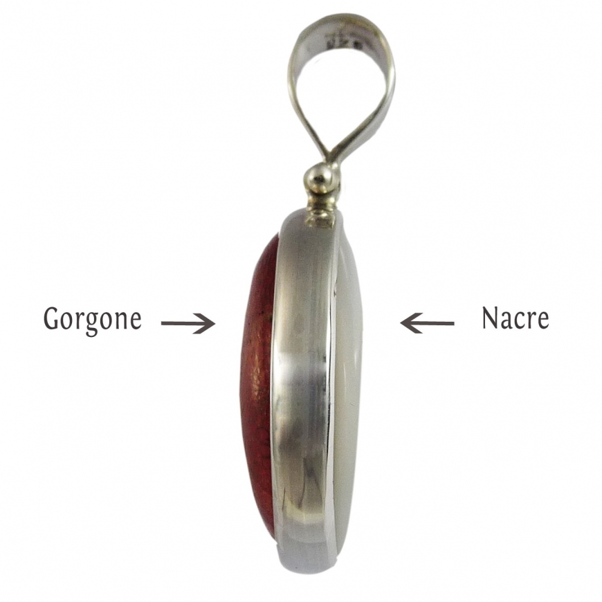 Pendentif nacre reversible gorgone rouge et argent
