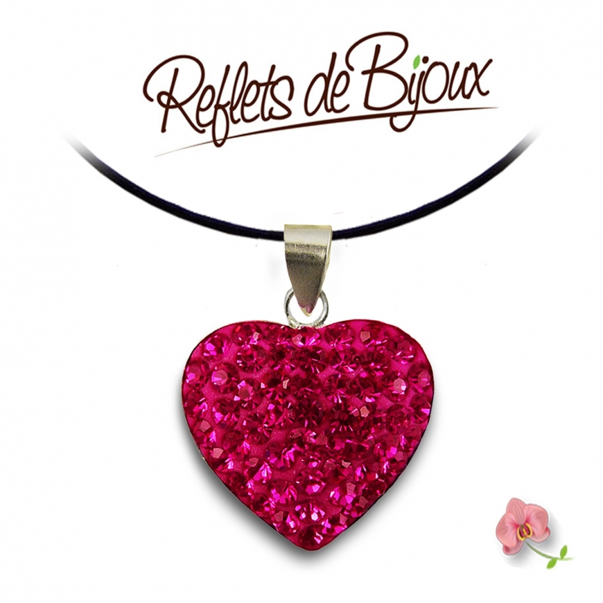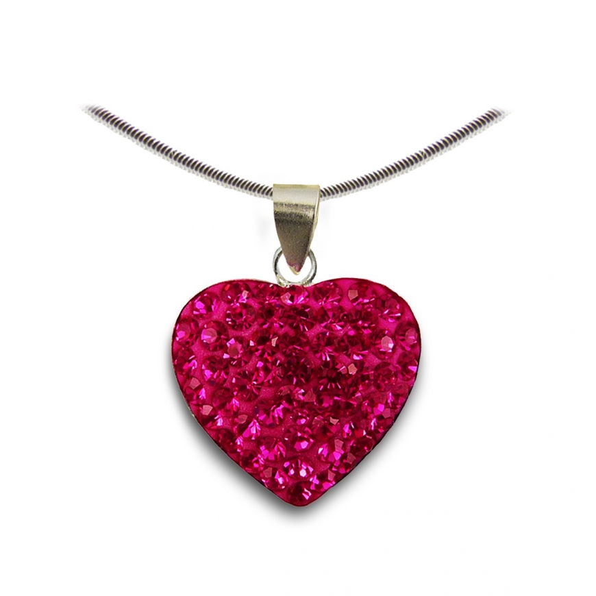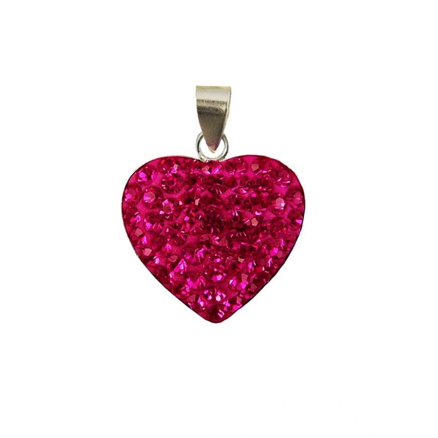 Pendentif strass d'oxyde de zirconium - strass et argent cœur rose fuchsia