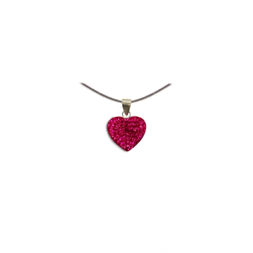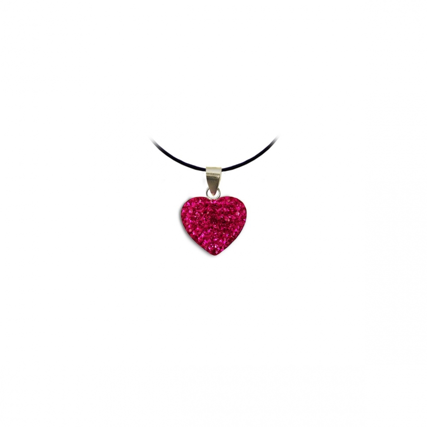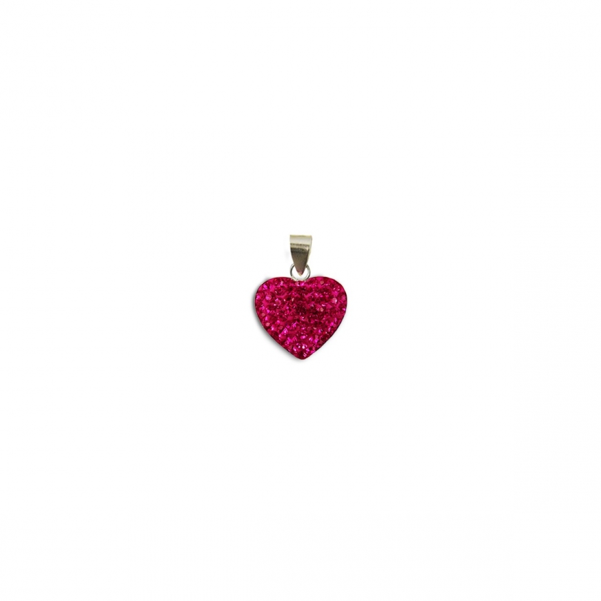 Pendentif petit strass d'oxyde de zirconium - strass et argent cœur rose fuchsia et argent 925