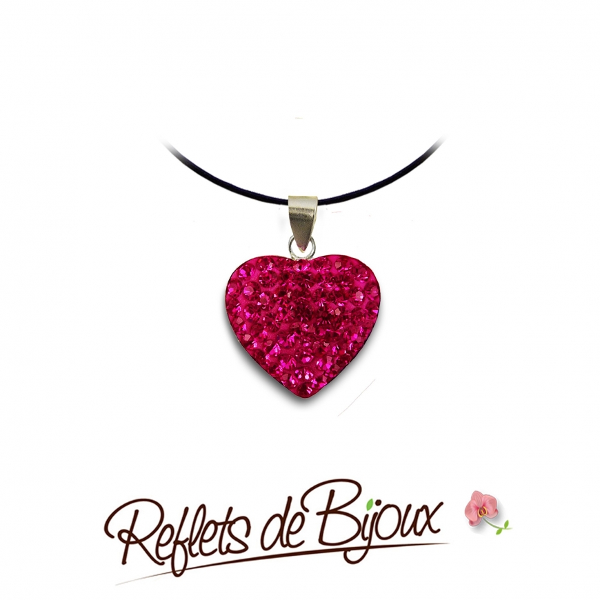 Pendentif argent et oxyde de zirconium en forme de petit cœur scintillant de couleur rose fushia. Pour les femmes des bijoux en strass, couleur vive, brillante et vivante. Cordons et chaines vendus séparément (menu ras du cou)