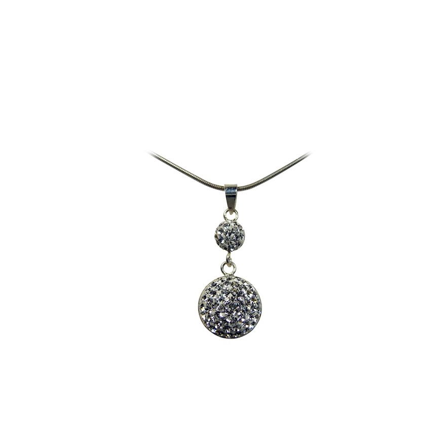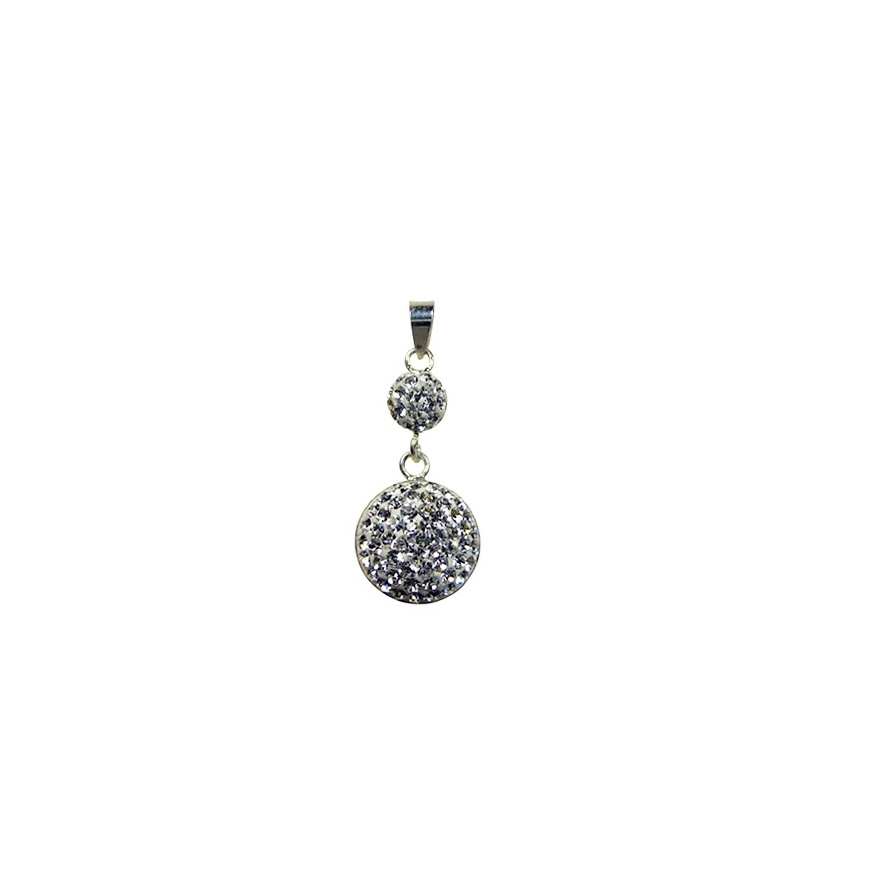 Double pendentif en strass blanc et argent.