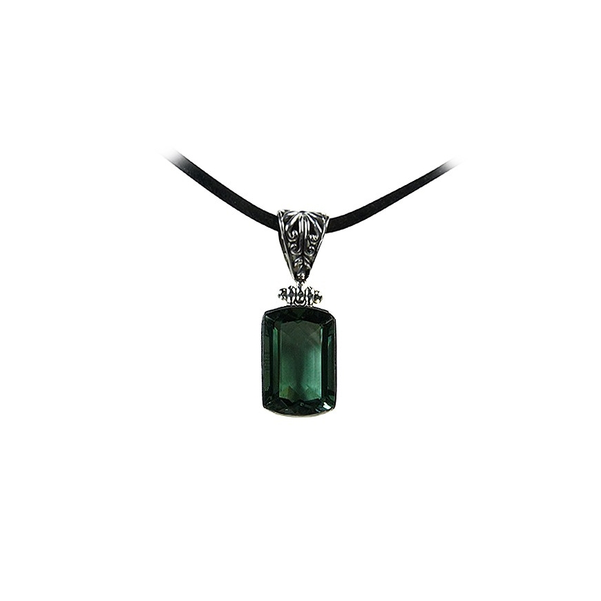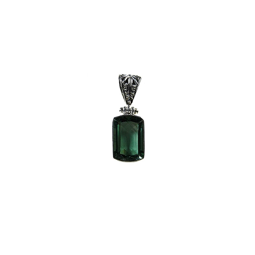 Pendentif en argent et quartz vert en forme de rectangle, monté sur argent.