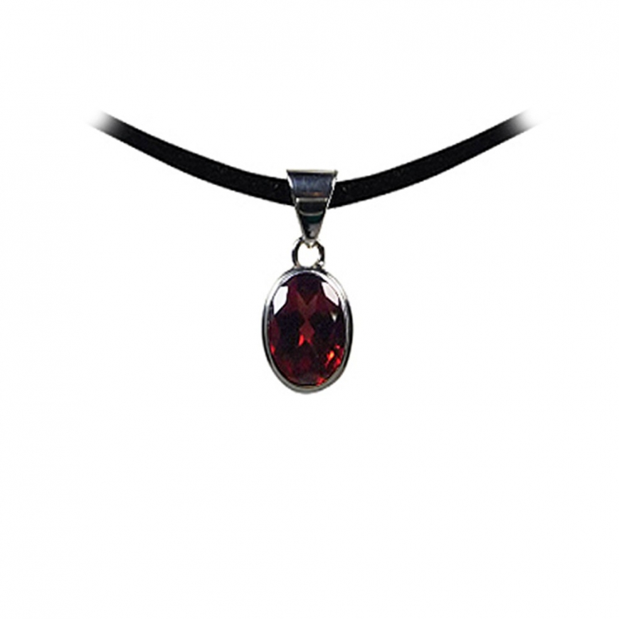 Sobre et discret pendentif en grenat facetté et serti en argent lisse. Ce petit pendentif peut être porté par des femmes ou jeunes filles il est petit et facile à porter.