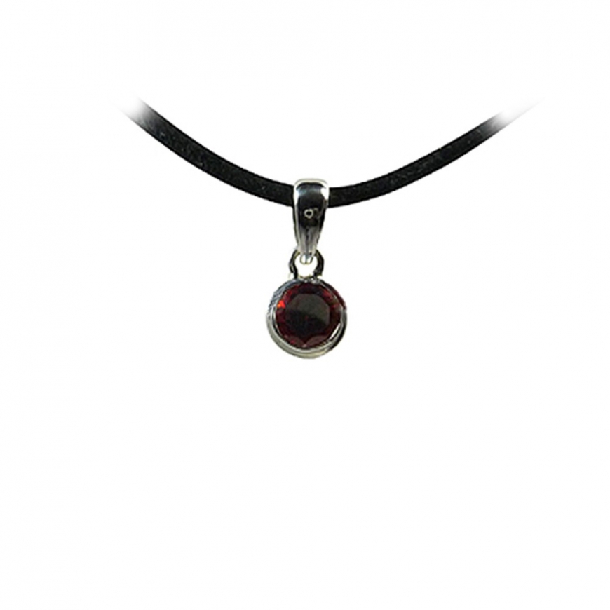 Discret et sobre pendentif en grenat rouge et facetté, le tout serti en argent lisse.