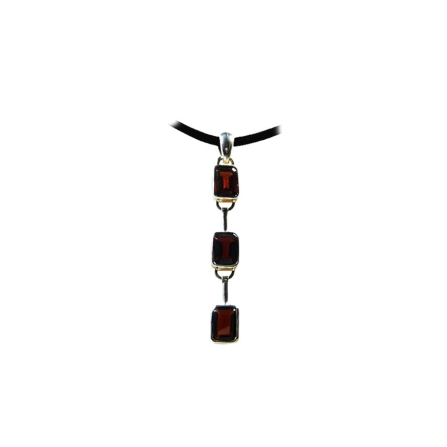 Joli pendentif tout en longueur avec trois grenats rectangulaire,suspendus par une fine barre en argent, ce pendentif est très chic et sobre.