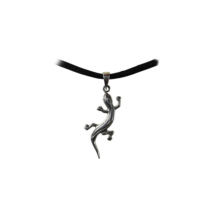 Pendentif en argent lisse représentant un petit lézard ( gecko)