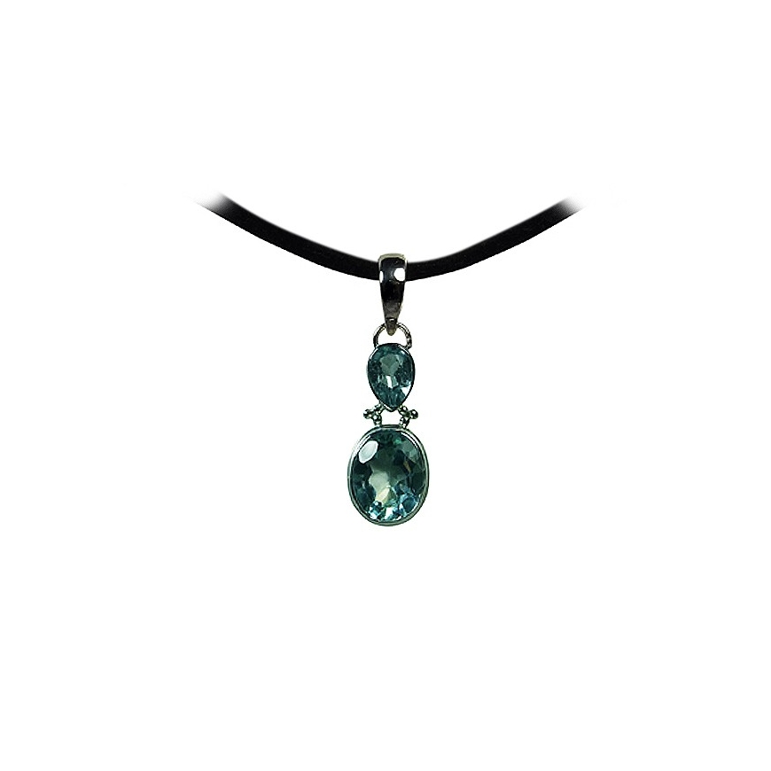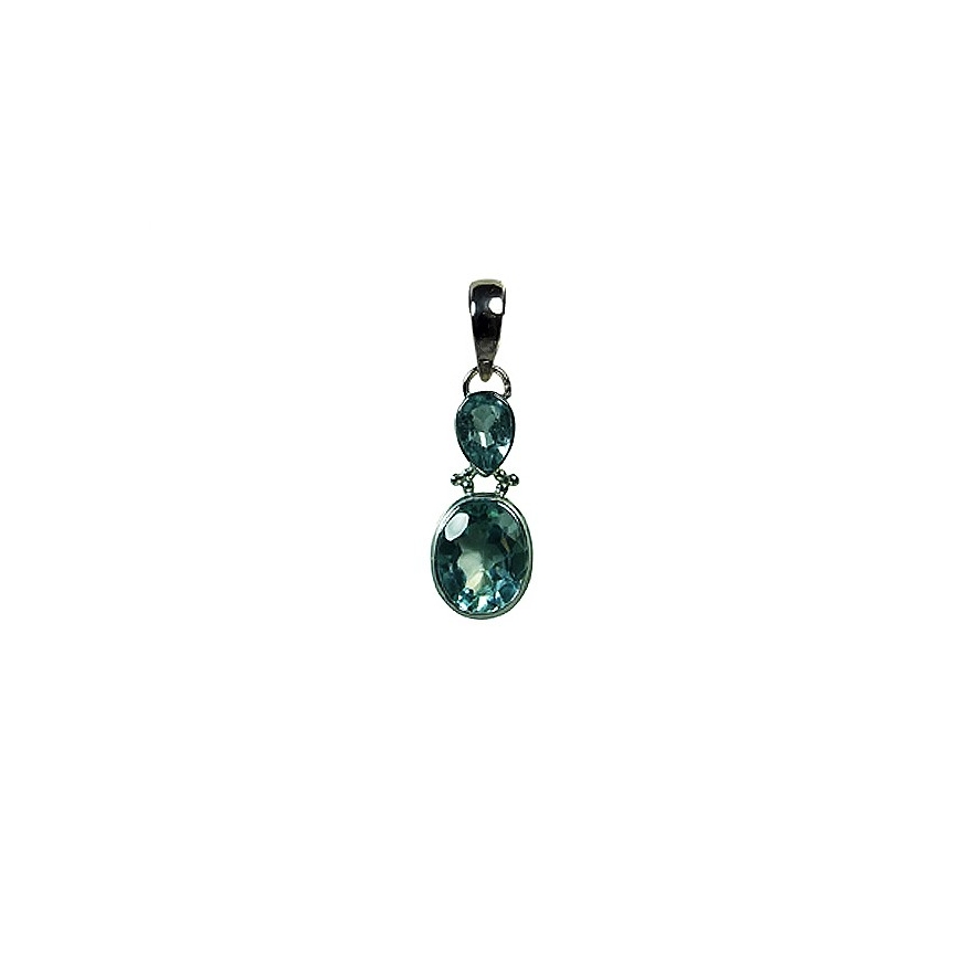 Pendentif double Topaze Bleue, argent
