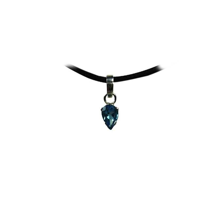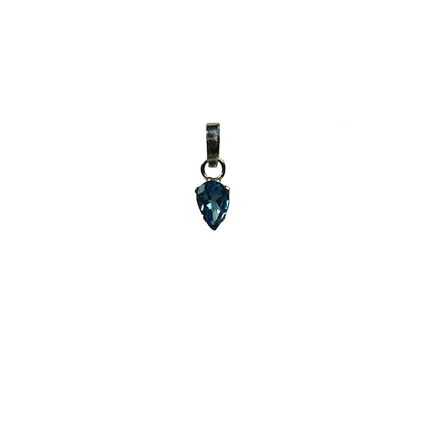 Sobre et discret pendentif en topze de couleur bleu mer. Elle est tenue par 4 griffes en argent.