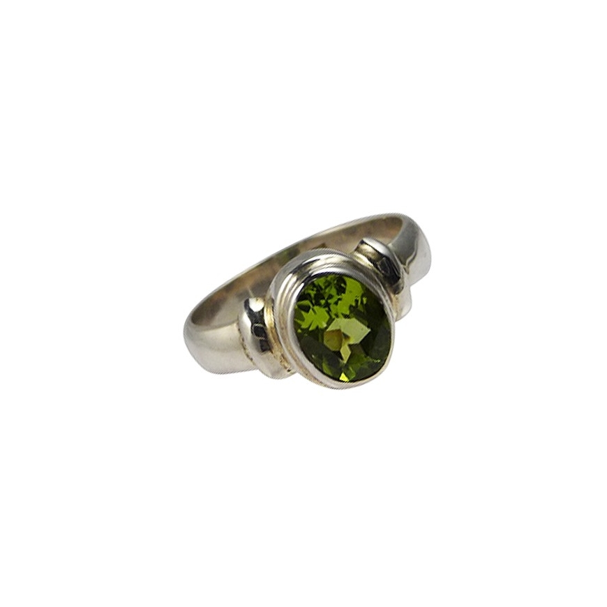 Petite bague en argent et péridot ovale.