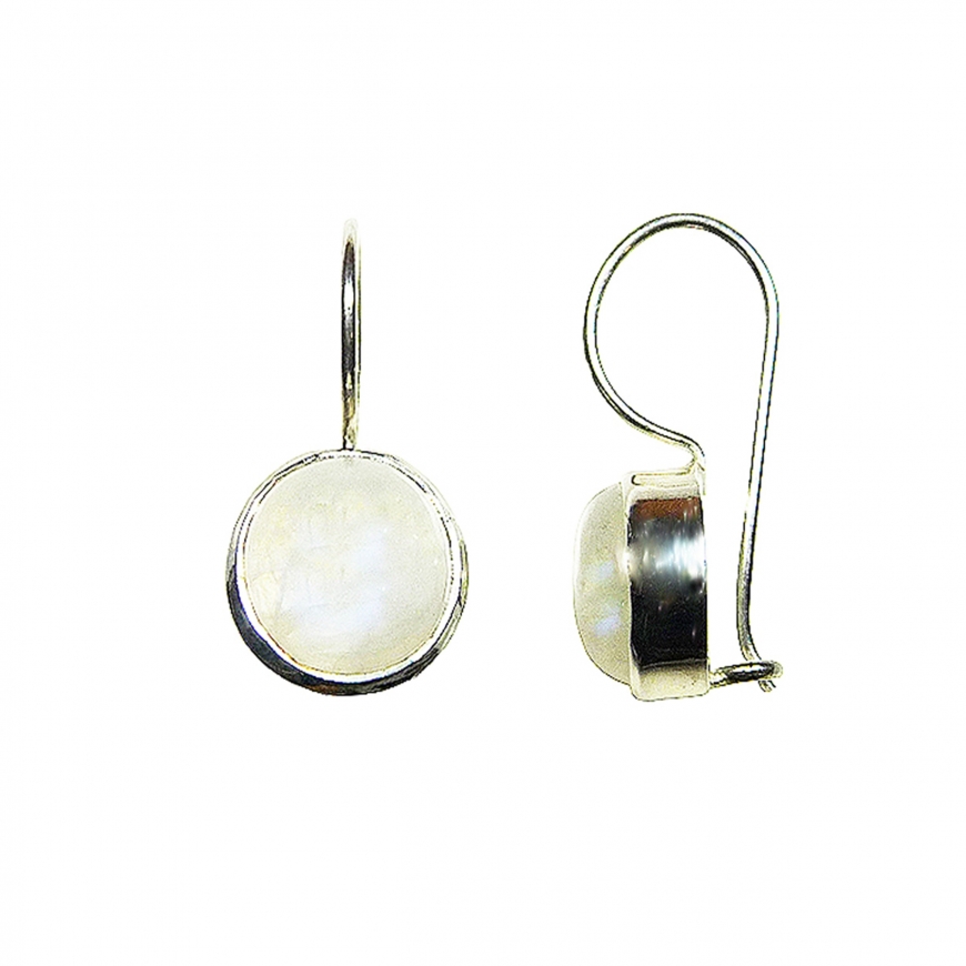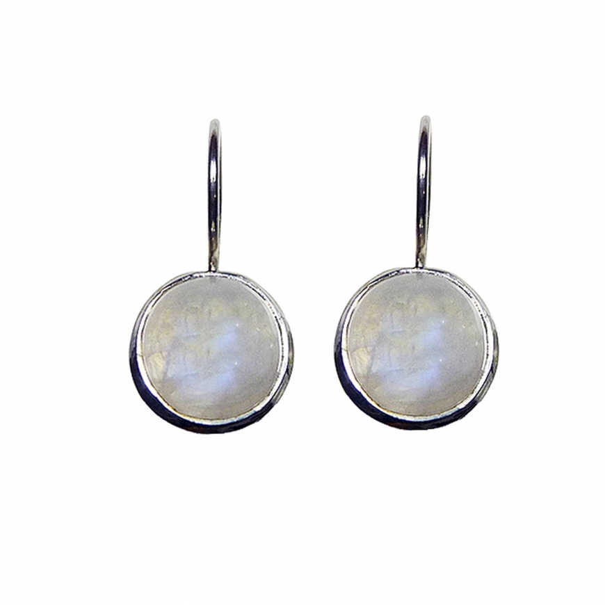 beaux reflets bleutés propres à la pierre de lune. Boucles d'oreilles rondes pour femme en pierre blanche translucide,