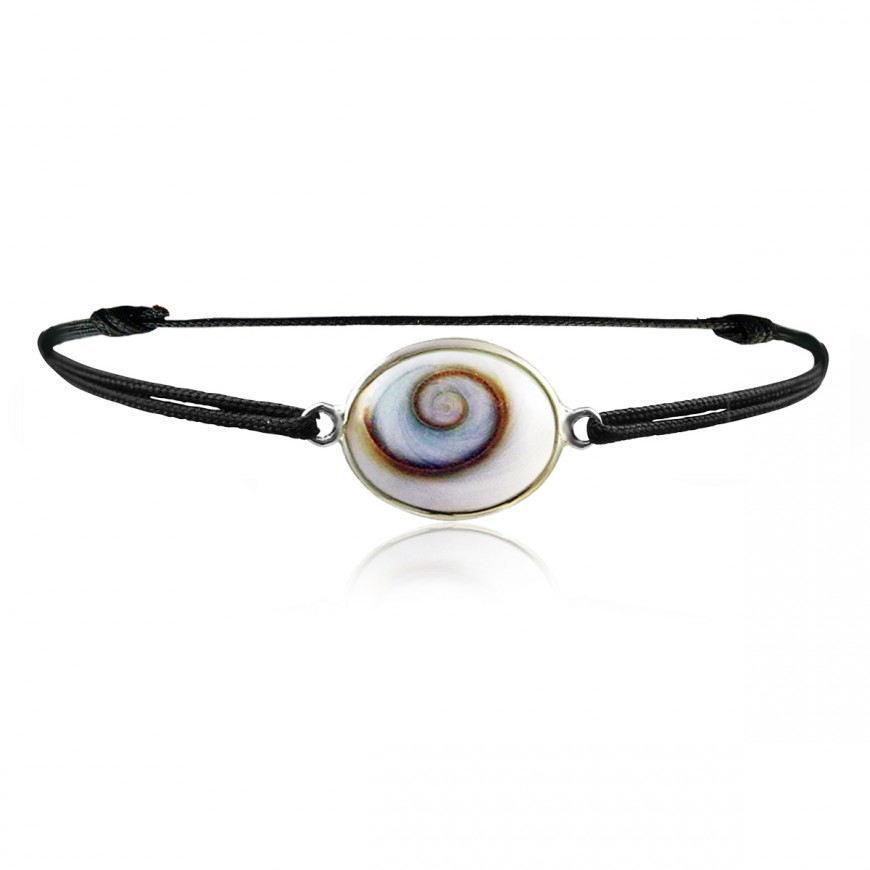 Bracelet en œil de sainte lucie ovale serti argent, monté sur un cordon noir réglable de 10 a 20 cm par nœud coulissant, l'œil de sainte lucie mesure 1,9 cm de longueur sur 1,5 cm de hauteur, très agréable à porter, il se cordonne avec toutes les couleurs de vos vêtements, et peux se garder sous la douche!!!