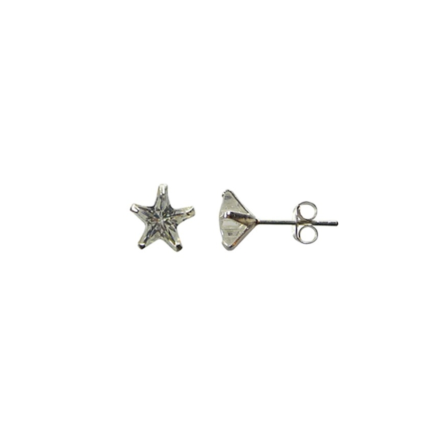 Boucles d'oreille fantaisie en forme d'étoile sertie d'argent massif. Boucles d'oreilles type clou livrées avec fermoir papillon.