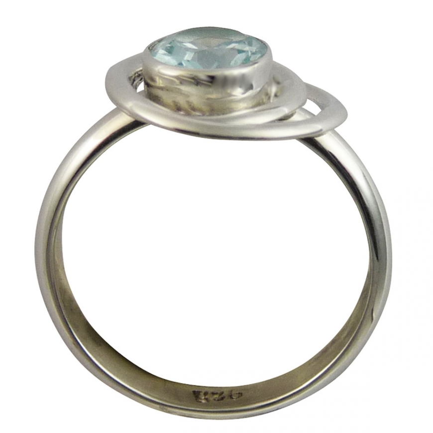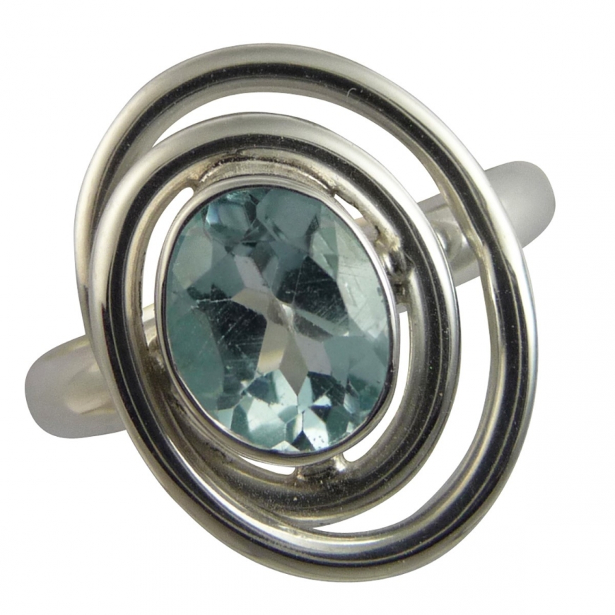Bague pierre bleue en argent lisse moderne avec une spirale fine qui met en valeur une belle topaze bleue facettée, bague femme trés fine et class!