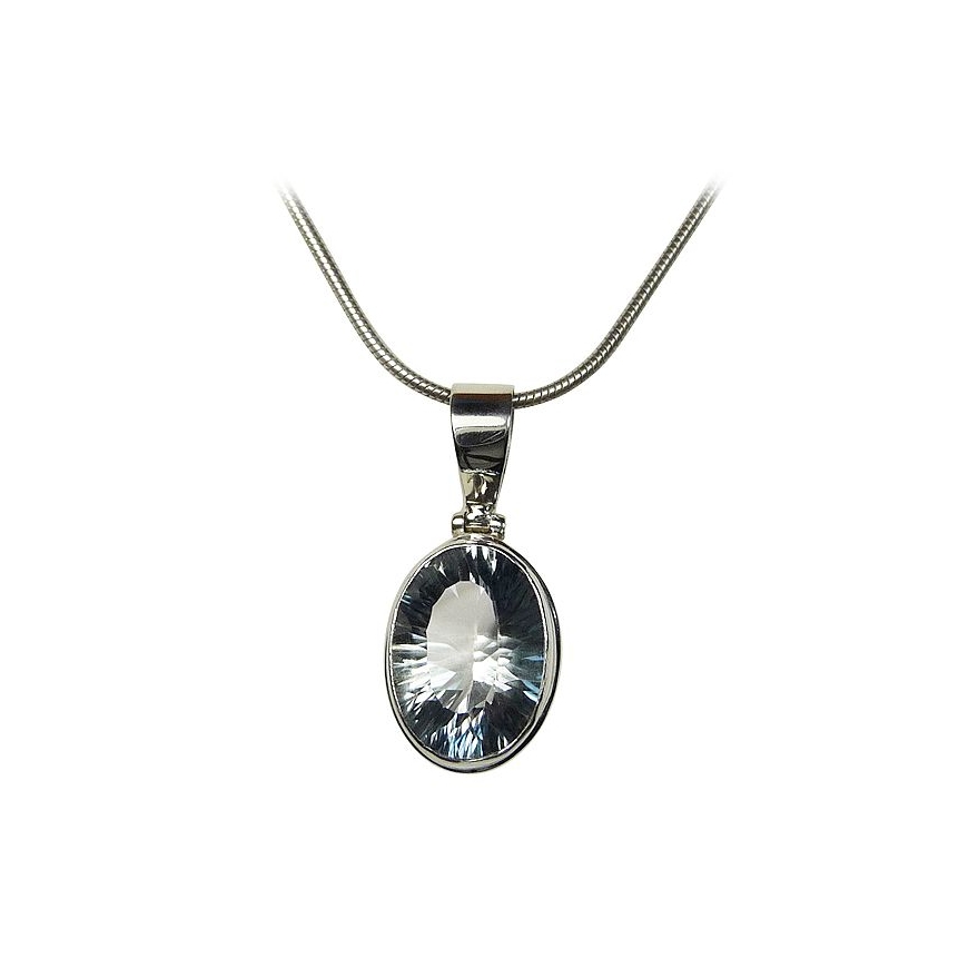 Magnifique pendentif en topaze bleue aux milles reflets en forme d'ovale. Un bijoux qui représente la joie de vivre.