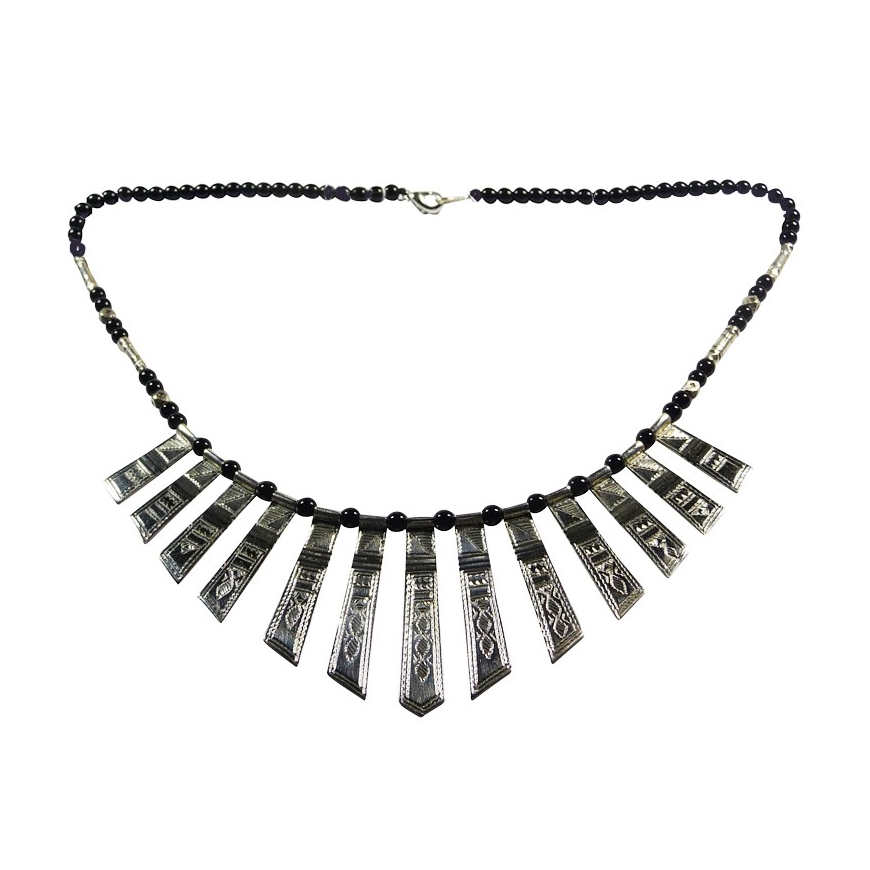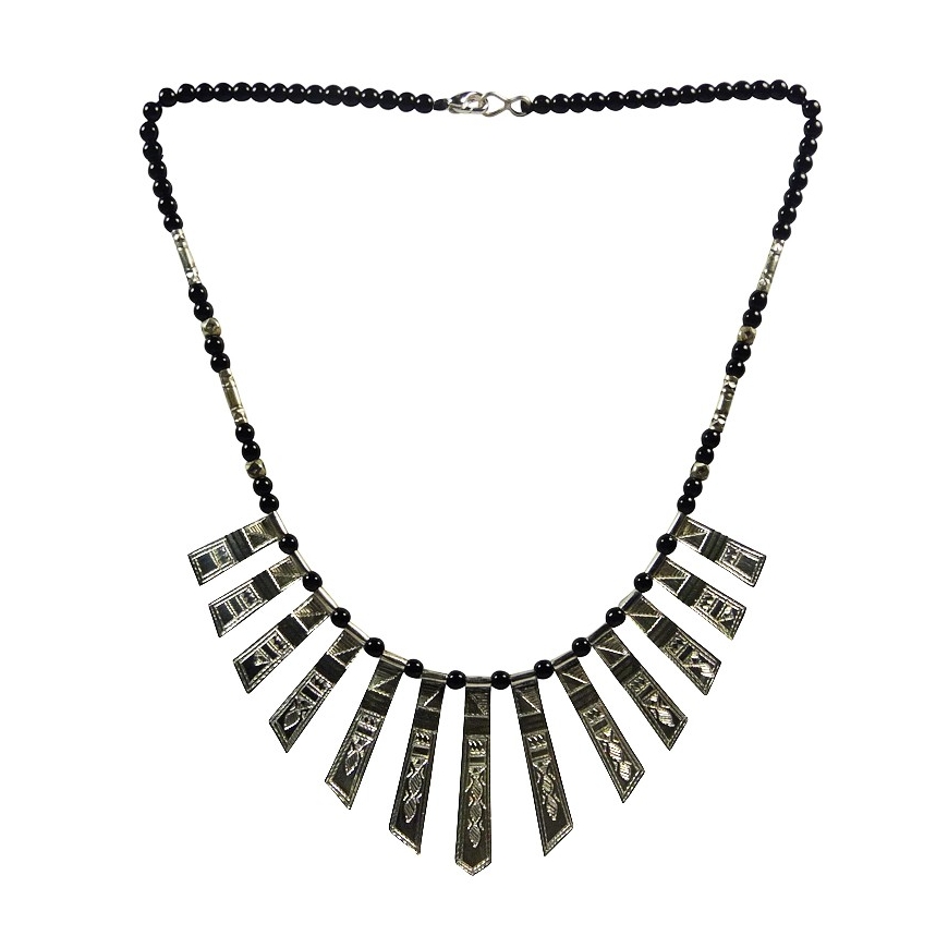 Collier classique Touareg en forme de lamelles d'argent. Les lamelles d'argent sont finement travaillées, Collier type « Celebra » avec perles noires. Fermeture mousqueton sécurisé.