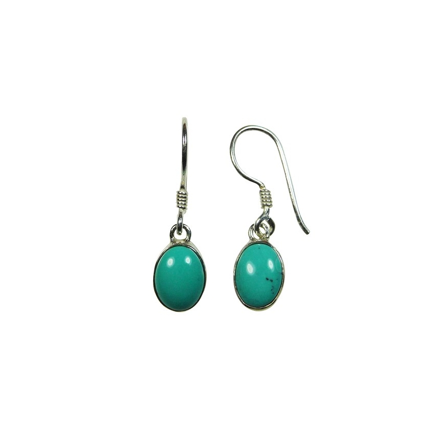 Ces boucles d'oreilles en argent et cabochon en turquoise sont montées en dormeuse ovales, elles plairont aux femmes qui aiment les bijoux simples et sobres, facile à porter au printemps et en été. Livrées avec bouchons en silicone autobloquants.